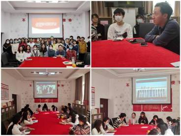 随后,全体党员分组开展专题研讨活动。王桐涛、高子轶、郭紫璇和邵蓉四位同志结合自身实际和学习感悟作了交流发言。大家纷纷表示要勇于奉献,吃苦在先,将理想、担当、奉献和爱国情怀有机融合,将青春书写在祖国大地。支部副书记李霜凝同志组织全体党员开展学习《习近平谈治国理政》第四卷、开展“一课一片一实践”工作并组织全体党员观看教育片。